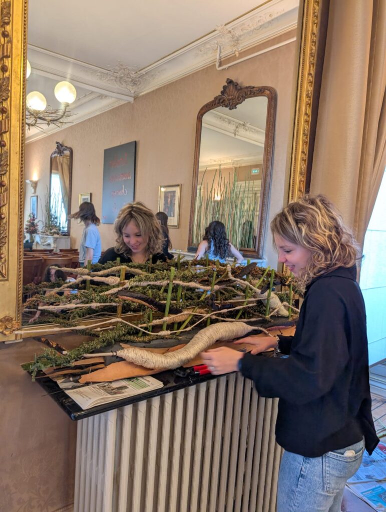 Accompagnés par Estelle, James et Dominique, ils ont mené ce projet de bout en bout : des croquis préparatoires jusqu’aux mises en scène florales, offrant aux visiteurs une découverte originale du patrimoine, mêlant histoire, architecture et art floral.
