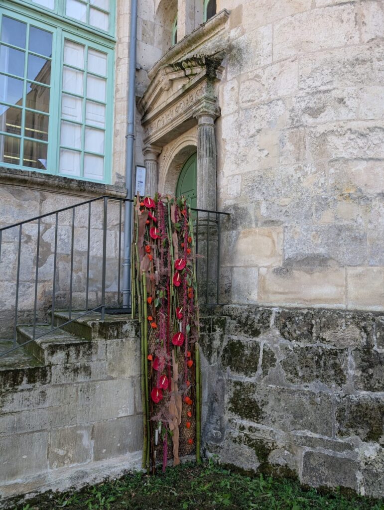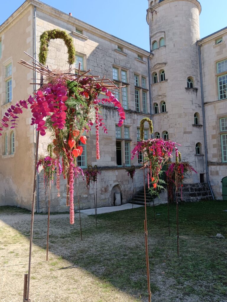 Accompagnés par Estelle, James et Dominique, ils ont mené ce projet de bout en bout : des croquis préparatoires jusqu’aux mises en scène florales, offrant aux visiteurs une découverte originale du patrimoine, mêlant histoire, architecture et art floral.